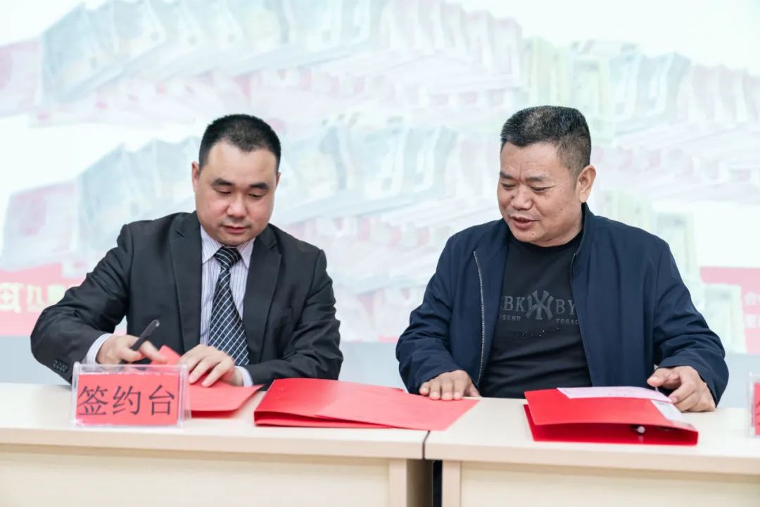 ▲隆回九鼎總經(jīng)理羅海輝與客戶(hù)現(xiàn)場(chǎng)進(jìn)行批次育肥兜底簽約儀式
