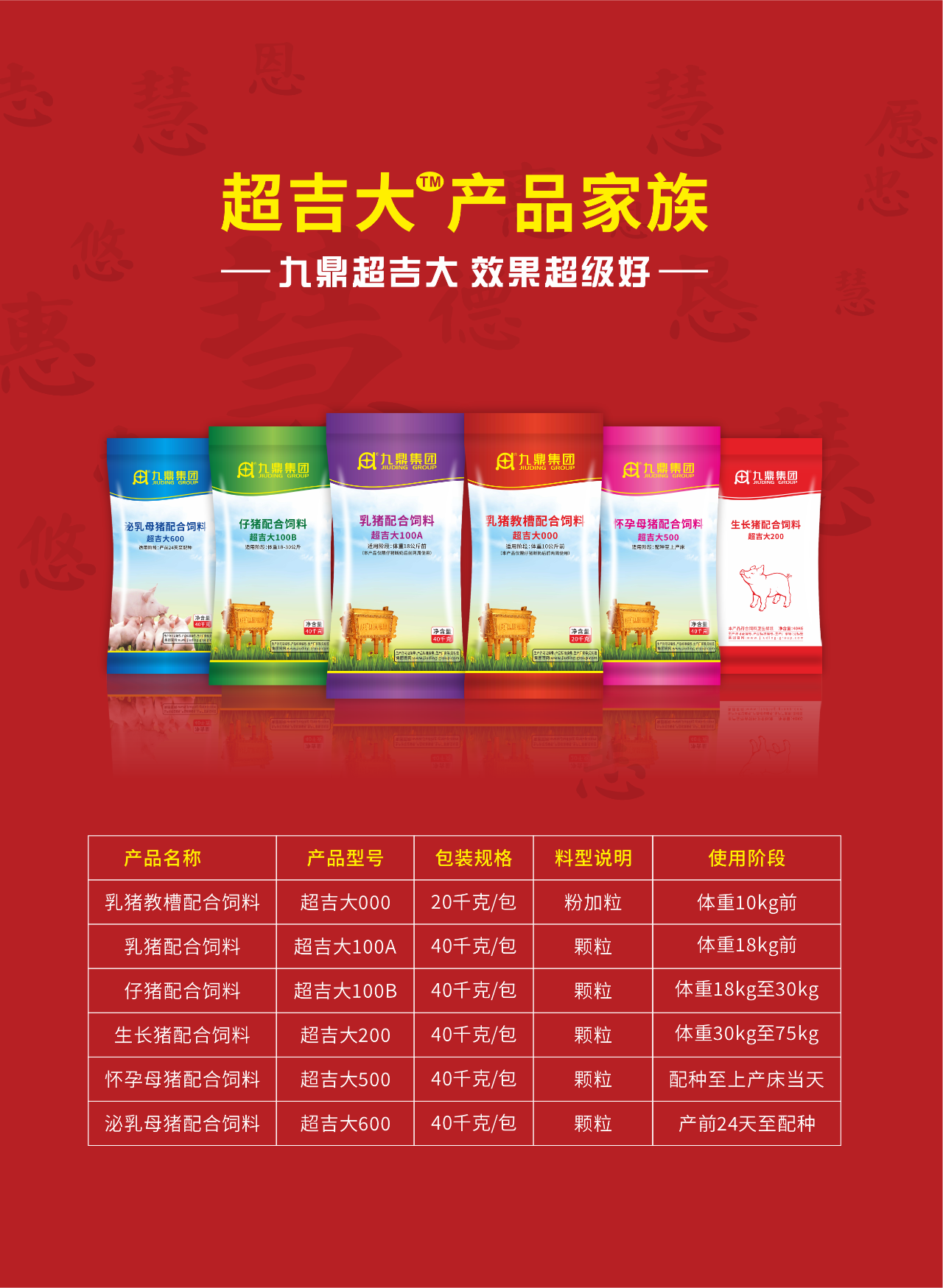 九鼎集團自成立以來一直專注于豬飼料生產和研究,2024年,九鼎集團將成立三十周年,我們在技術研發和生產工藝方面一直處在行業前列,今年更是推出了全新的“超吉大”系列產品,通過為養殖戶提供高效、精準的營養解決方案,從而為客戶創造更多的價值,也為生豬養殖行業注入了新的活力。這也是九鼎多年來堅持研發投入的初心所在。因為我們九鼎人相信只要肯付出就一定會有回報,我們愿與廣大客戶及同仁一起創造價值,收獲成功!