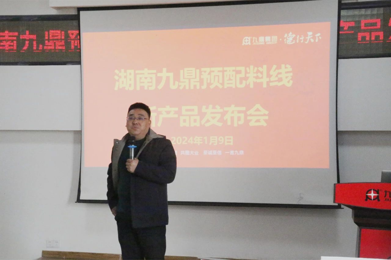 2024年1月9日清晨,岳陽(yáng)新港區(qū)九鼎研究院三樓會(huì)議室熱鬧非凡,一場(chǎng)振奮人心的盛會(huì)拉開了帷幕。預(yù)配料線年會(huì)及新產(chǎn)品發(fā)布會(huì)聚集了各營(yíng)銷公司的精英,座無虛席,見證了預(yù)混料新產(chǎn)品的盛大亮相!